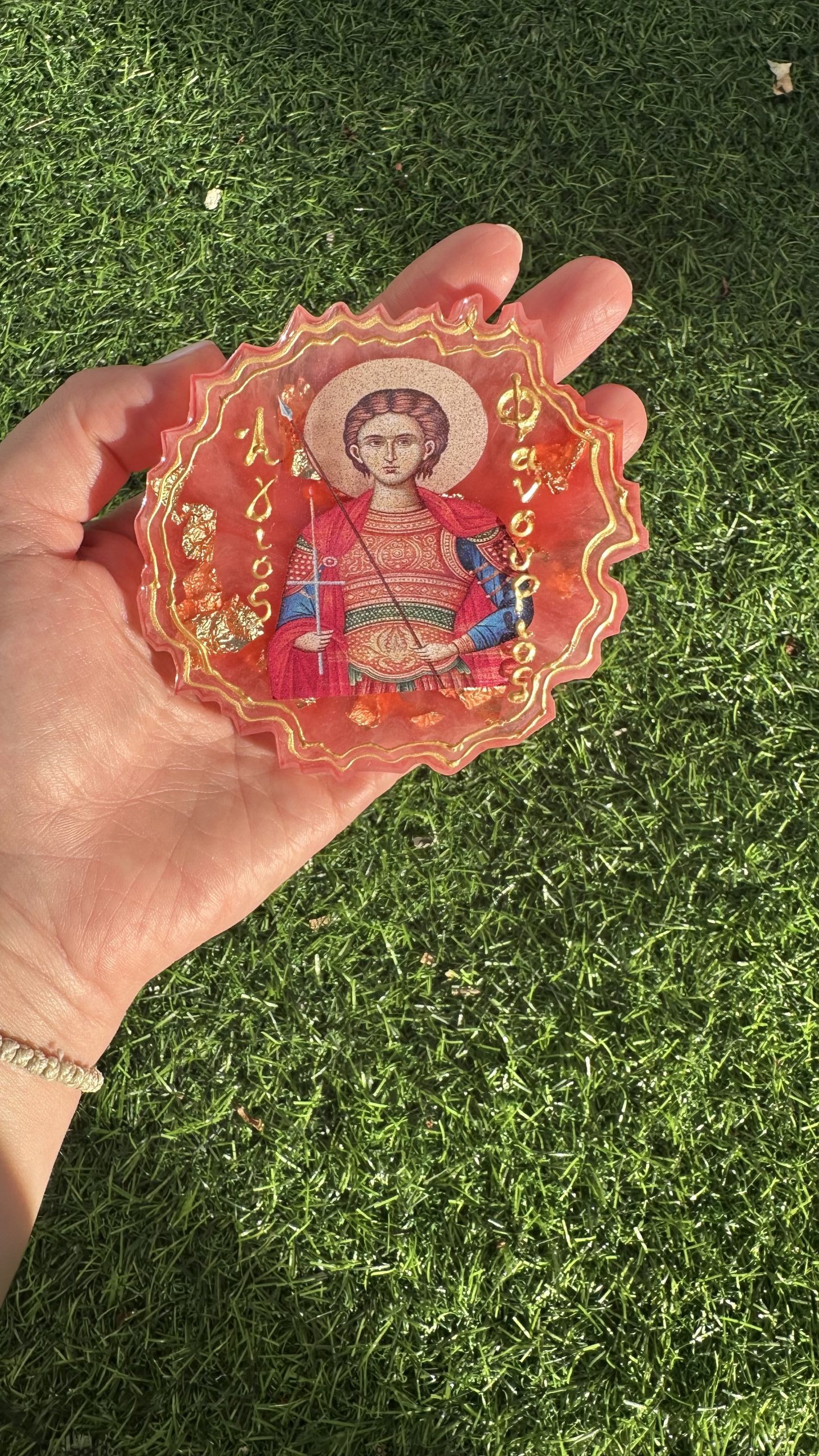 Χειροποίητη οβάλ εικόνα Αγίου Γεωργίου από υγρό γυαλί