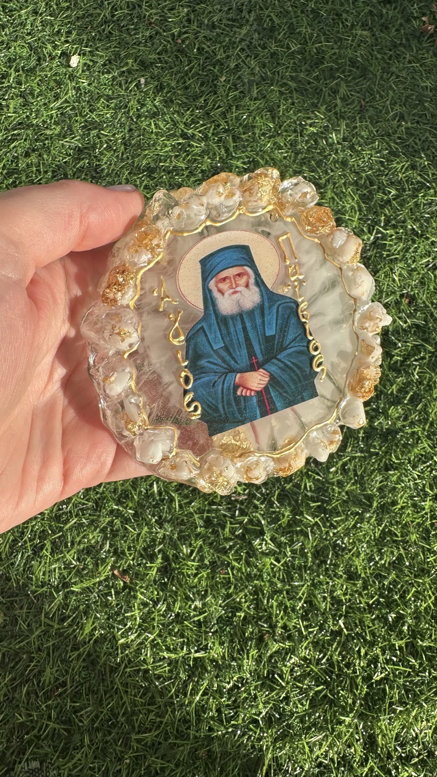 Χειροποίητη εικόνα Αγίου Παϊσίου από υγρό γυαλί