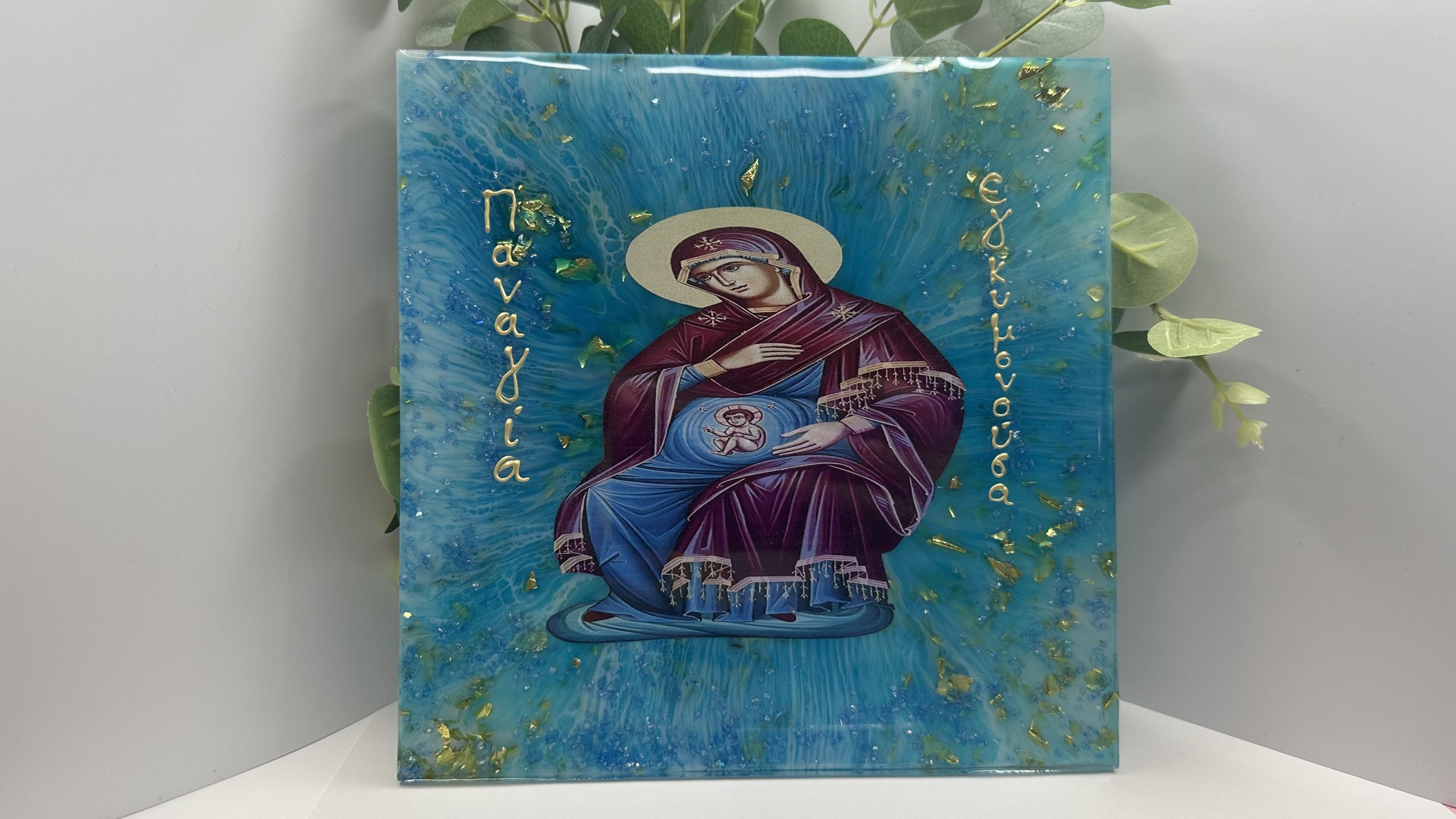Χειροποίητη εικόνα Παναγίας Εγκυμονούσας από υγρό γυαλί