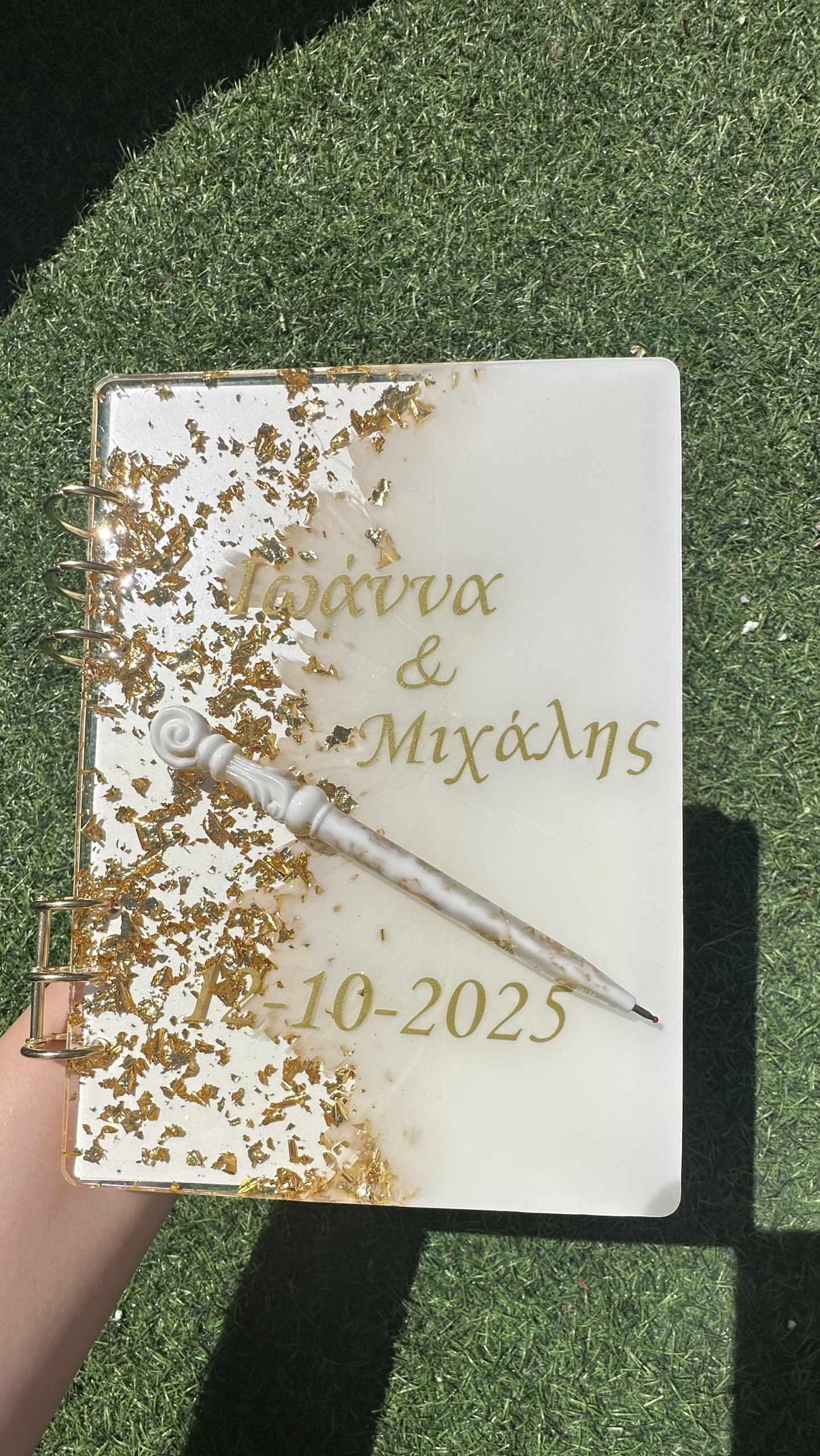 Το ευχολόγιο είναι σε διάσταση 21 Χ 17 , σε λευκές αποχρώσεις με φύλλα χρυσού . Περιέχει 20 φύλλα από χοντρό χαρτόνι ειδικό για γραφή. Μαζί δίνεται και δώρο το στυλό στις ίδιες αποχρώσεις. Ο χρόνος παράδοσης κυμαίνεται από 8 έως 15 ημέρες.